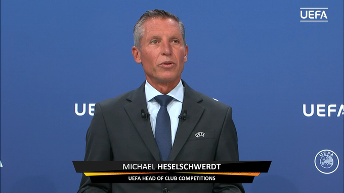 14:02. Руководит жеребьевкой глава отдела клубных соревнований УЕФА Михаэль Хесельшвердт.