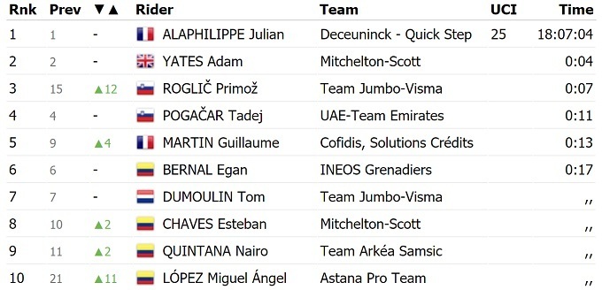 Жулиан Алафилипп финишировал пятым и сохранил желтую майку лидера общего зачета.
