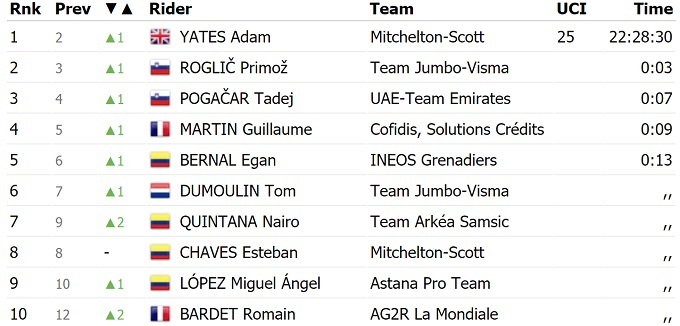 Новым лидером общего зачета стал британец Адам Йейтс из Mitchelton Scott, а Алафилипп опустился сразу на 16-е место.