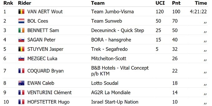 Вчера четвертый этап выиграл партнер Ван Арта по Jumbo Visma Примож Роглич.