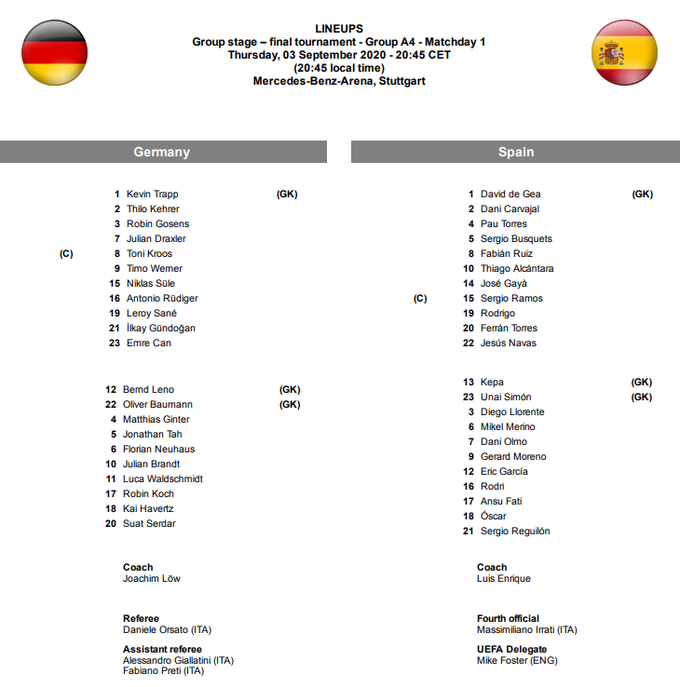 Сегодня, 3 сентября, в матче 1-го тура Лиги наций Германия принимает Испанию.