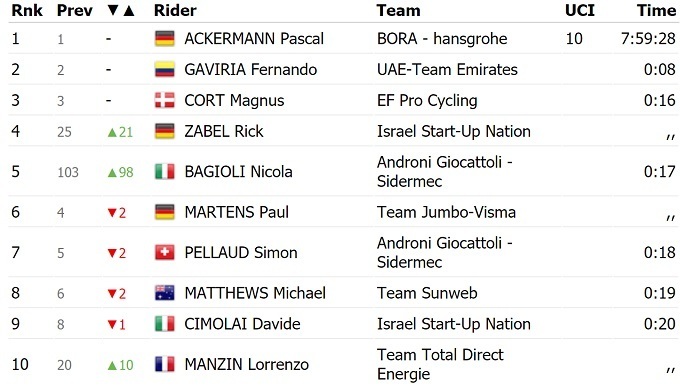 Гонщик Bora Hansgrohe Паскаль Аккерманн стал победителем второго этапа итальянской многодневки Тиррено – Адриатико. В финишном спринте он опередил Фернандо Гавирию и Рика Цабеля.