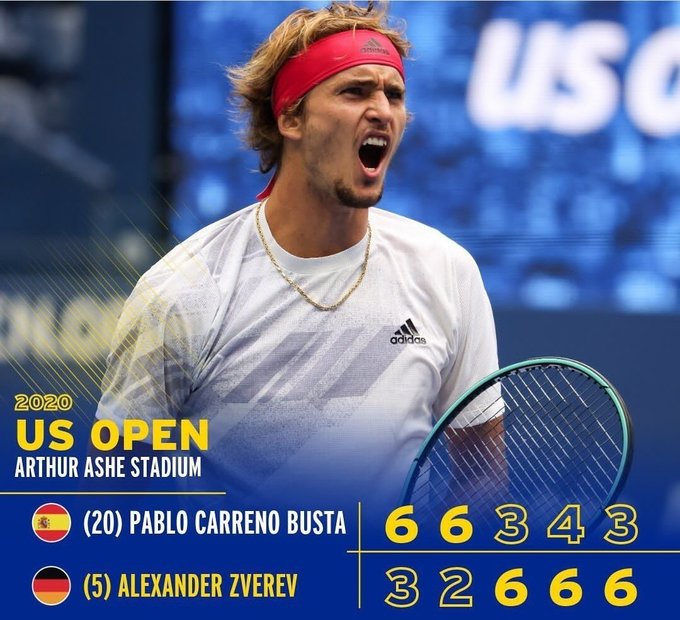 Немецкий теннисист Александр Зверев (ATP 7) в пяти сетах победил испанца Пабло Карреньо-Бусту (ATP 27) и вышел в финал US Open 2020.