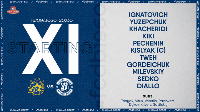 Маккаби Т-А – Динамо Бр. Милевский и Хачериди – в основе. Стартовые составы