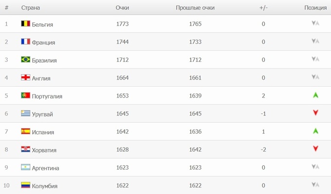 ФИФА обновила рейтинг сборных, в котором сборная Украины продолжает занимать 24-е место.
