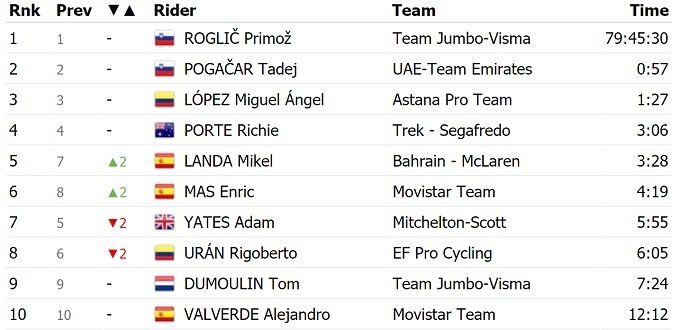 В генеральной классификации Примож Роглич сумел отбить атаки соперников и остался лидером.