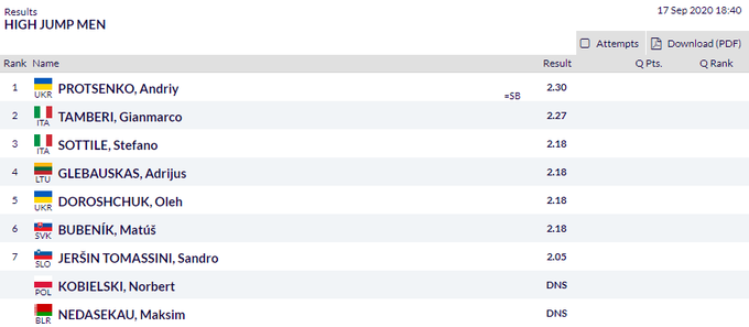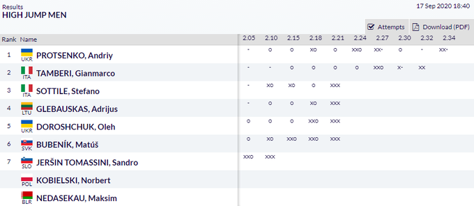 Андрей Проценко завоевал золото в прыжках в высоту среди мужчин на этапе Бриллиантовой лиги в Риме. Украинец показал результат 2 метра и 30 сантиметров.