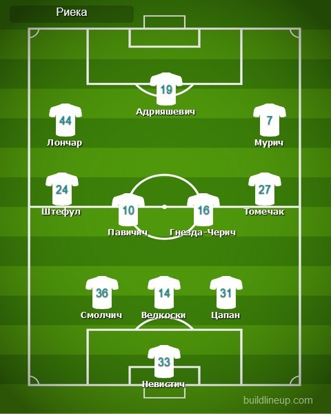«Риека»: Иван Невистич, Хрвое Смолчич, Дарко Велковски (Жоау Эсковал, 91), Лука Цапан, Даниэл Штефул, Домагой Павичич (Сандро Куленович, 71), Адам Гнезда-Черин (Иван Лепиница, 99), Иван Томечак (Момчило Распопович, 90+1), Стьепан Лончар, Франко Адрияшевич, Роберт Мурич