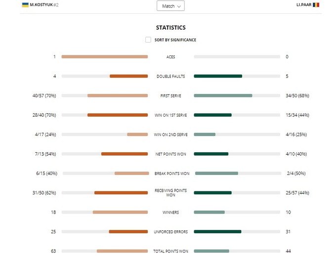 Марта Костюк (Украина) – Лаура Йоана Пар (Румыния) – 6:2, 6:2