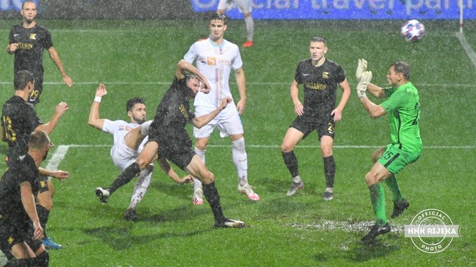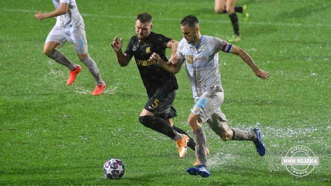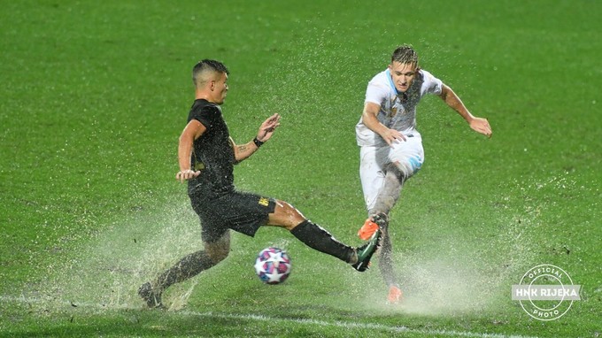 При дождливой погоде хорватская «Риека» нанесла поражение «Колосу» из Ковалевки (2:0). Два гола были забиты в овертайме после грубых ошибок игроков команды гостей.