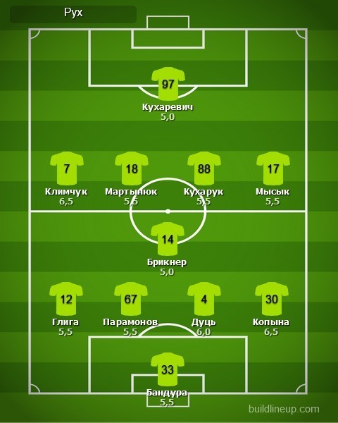 Замены «Руха»: Владимир Заставный - 5,5; Ростислав Русин - 5,5; Иван Калюжный - 5,0; Богдан Бойчук - 5,0; Эрнест Антви - 5,0.