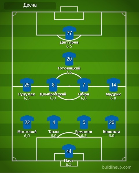 Замены «Десны»: Владислав Калитвинцев - 6,5; Филипп Будковский - 6,5; Сергей Старенький - б/о; Илья Шевцов - б/о; Павел Полегенько - б/о.