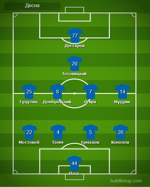 «Десна»: Евгений Паст, Тамм, Виталий Ермаков, Владислав Огиря, Андрей Домбровский, Андрей Мостовой (Павел Полегенько, 92), Михаил Мудрик (Владислав Калитвинцев, 60), Алексей Гуцуляк (Илья Шевцов, 92), Ефим Конопля, Андрей Тотовицкий (Сергей Старенький, 90), Максим Дегтярёв (Филипп Будковский, 60)