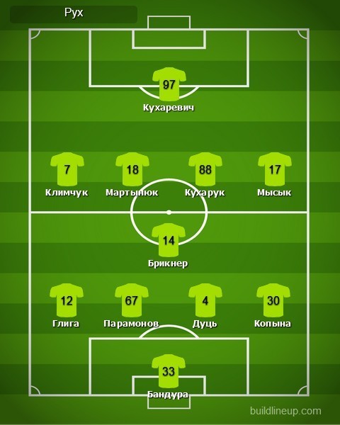 «Рух»: Aлександр Бандура, Игорь Дуць, Вадим Парамонов, Эрик Глига, Ярослав Мартынюк, Юрий Копына (Владимир Заставный, 41), Иван Брикнер (Иван Калюжный, 60), Андрей Кухарук (Ростислав Русин, 46), Юрий Климчук (Богдан Бойчук, 74), Марьян Мысык, Николай Кухаревич (Эрнест Антви, 74)