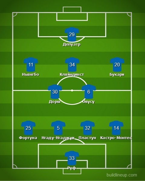 «Гент»: Дави Руф, Нуриу Фортуна, Майкл Нгаду-Нгаджуи, Игорь Пластун, Алессио Кастро-Монтес (Джордан Ботака, 65), Никлас Дорш, Элиша Овусу (Сулайман Маррех, 54), Андерсон Ньянгбо, Тим Кляйндинст, Осман Букари, Лоран Депуатр (Маттис Самуаз, 74)