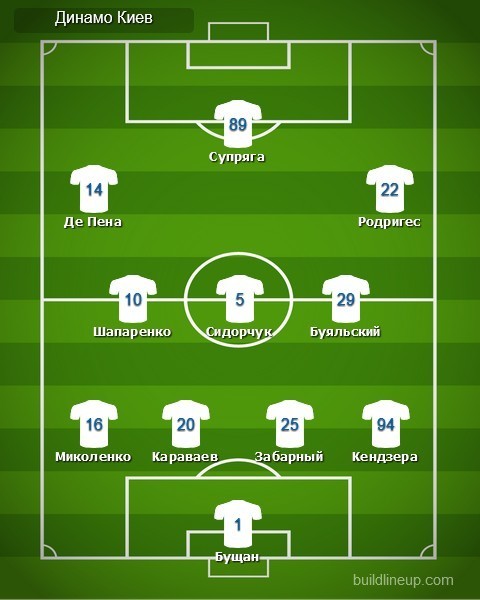 «Динамо»: Георгий Бущан, Александр Караваев, Виталий Миколенко, Илья Забарный, Томаш Кендзёра, Сергей Сидорчук, Виталий Буяльский, Николай Шапаренко (Александр Андриевский, 77), Карлос Де Пена (Беньямин Вербич, 59), Владислав Супряга, Жерсон Родригес (Виктор Цыганков, 60)