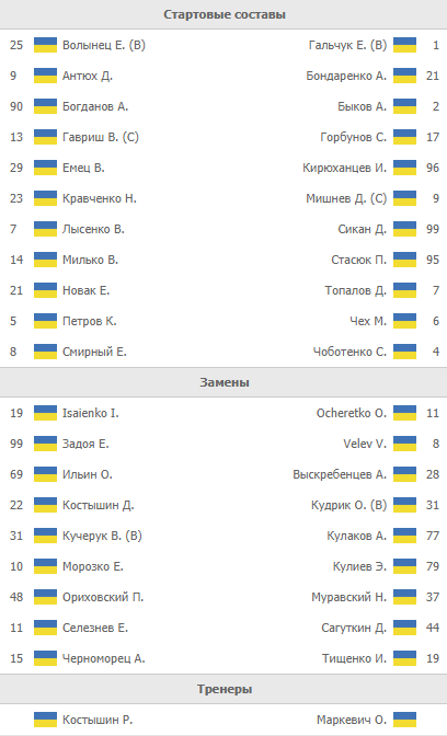 Стартовые составы команд.