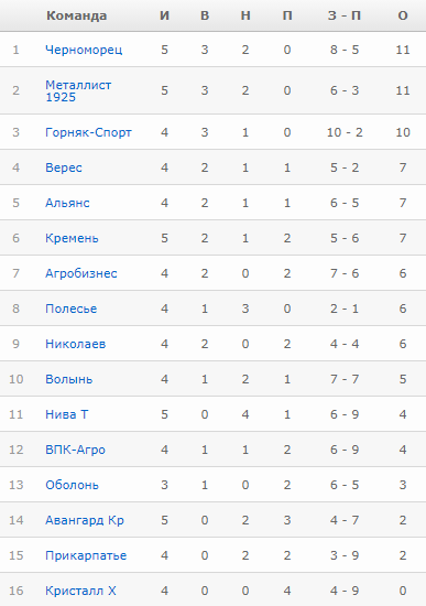 В турнире после 5 туров лидируют «Черноморец» и «Металлист 1925», набравшие по 11 очков из 15 возможных.
