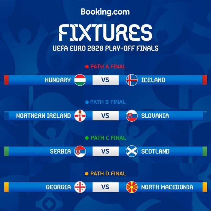 Плей-офф отбора Евро-2020. Результаты полуфиналов, состав пар финалов