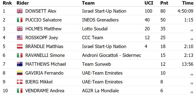 Британский гонщик команды «Israel Start-up nation» Алекс Даусетт стал победителем восьмого этапа Джиро д’Италия. В борьбе из отрыва он опередил Сальваторе Пуччо и Мэттью Холмса.