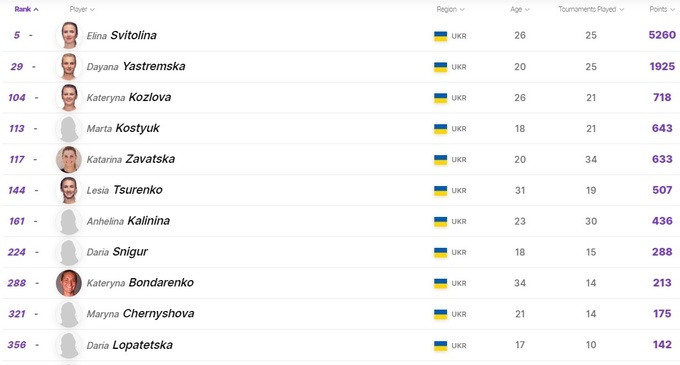 Рейтинг WTA. Свитолина сохраняет место в топ-5