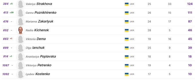 Что касается украинок, то Анне Познихиренко пришли 10 очков за победу на 15-тысячнике ITF, она поднялась на 20 позиции. Это основное изменение за неделю.
