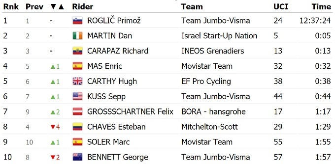 Ирландский гонщик команды «Israel Start-up nation» Дэн Мартин стал победителем третьего этапа Вуэльты-2020. Он опередил лидера общего зачета Приможа Роглича и Ричарда Карапаса.