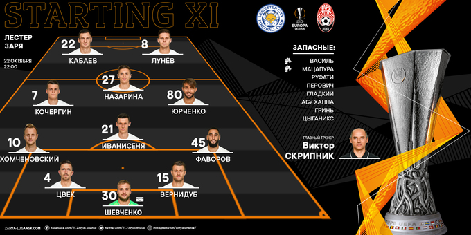 Лестер – Заря. Скрипник сделал свой выбор. Стартовые составы команд