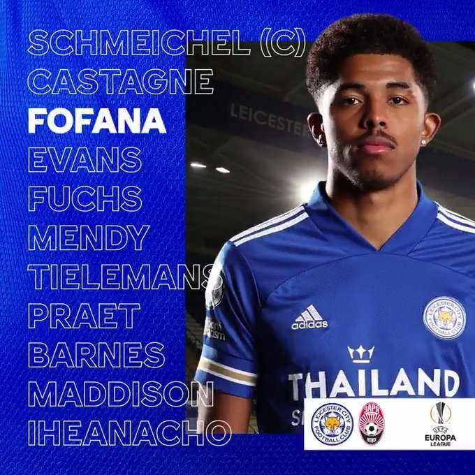 «Лестер»: Шмейхель, Кастань, Эванс, Фофана, Джастин, Менди, Тилеманс, Прат, Барнс, Перес, Ихеаначо.