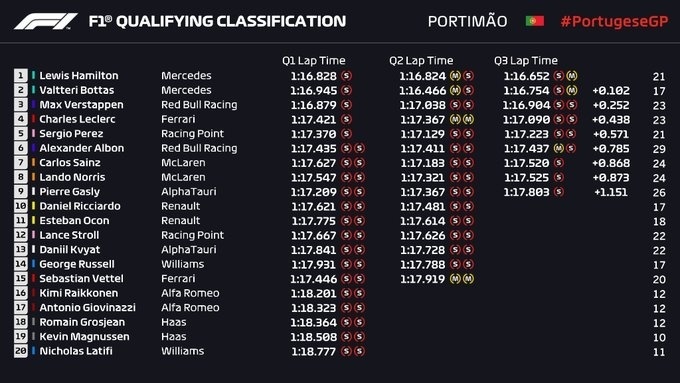 Топ-10: Хэмилтон, Боттас, Ферстаппен, Леклер, Перес, Альбон, Сайнс, Норрис, Гасли, Риккардо