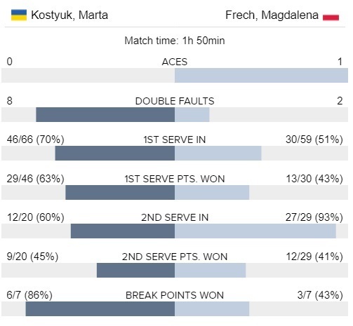 Марта Костюк (Украина) – Магдалена Фрех (Польша) – 6:3, 6:2