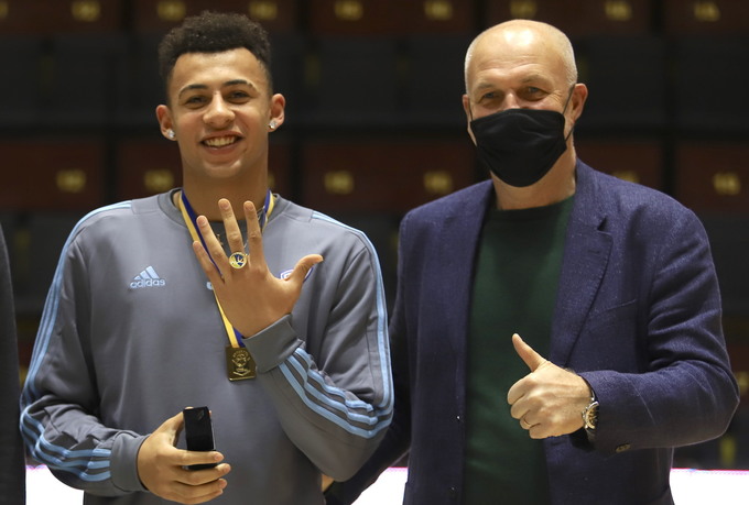 Сегодня перед игрой «Киев-Баскета» и «Днепра» состоялась церемония награждения драгоценными кольцами и медалями чемпионов Суперлиги.