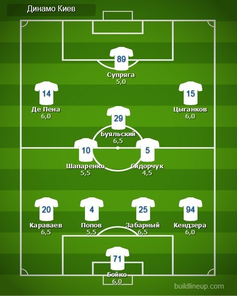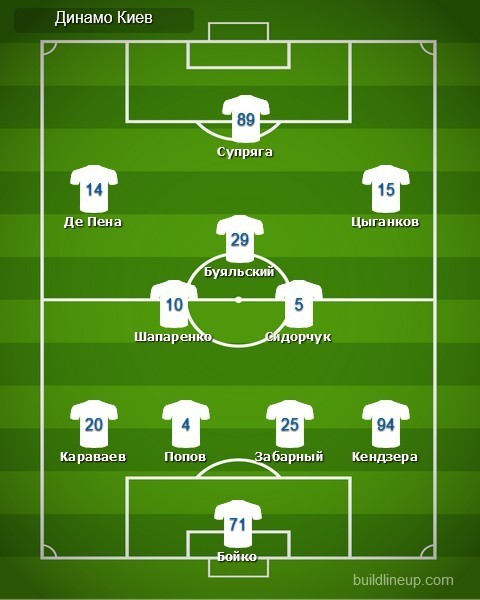 «Динамо»: Бойко, Кендзера, Попов, Забарный, Караваев, Сидорчук, Шапаренко (Белуцэ, 89), Цыганков (Родригес, 93), Буяльский (Гармаш, 82), Де Пена, Супряга (Вербич, 89).