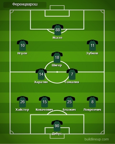 «Ференцварош»: Дибуш, Ловренчич (Ботко, 87), Блажич, Ковачевич (Двали, 87), Хайстер, Харатин (Лайдуни, 65), Сомалия, Зубков, Шигер (Мак, 73), Нгуен, Исаел (Боли, 73).
