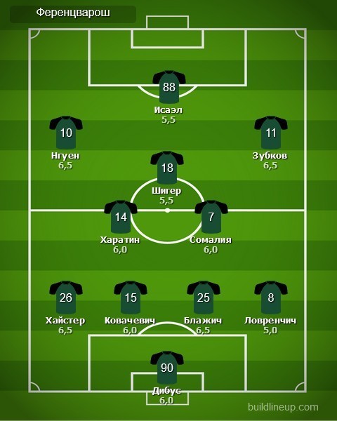 Замены «Ференцвароша»: Лайдуни - 6,0; Мак - 6,5; Боли - 6,5; Ботко - б/о; Двали - б/о.