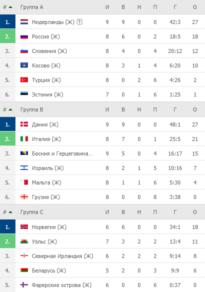 Пять сборных уже решили свою задачу: Германия, Нидерланды, Дания, Норвегия, Швеция.