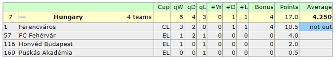 Находящаяся на 13-м месте Турция не смогла набрать очки в среду, поскольку «Истанбул Башакшехир» потерпел поражение от «ПСЖ» (0:2). Отставание Турции от Украины составляет ровно 1.000.