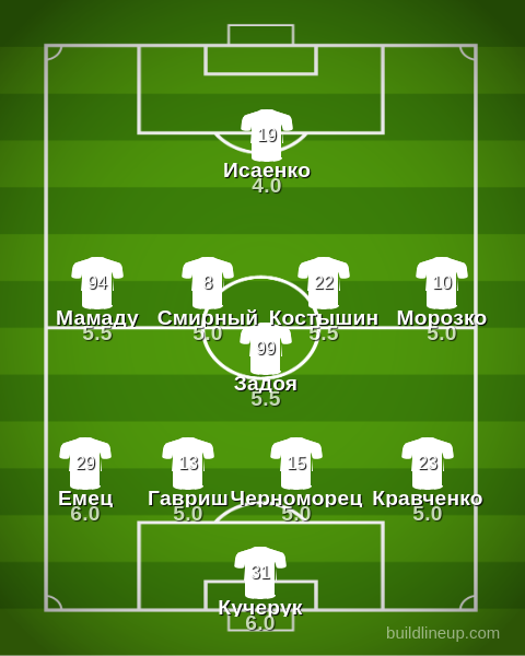 Задоя (8), Мамаду (26), Гавриш (60) , Ильин (65)- Бенито (15), Бабенко (20), Драме (64)