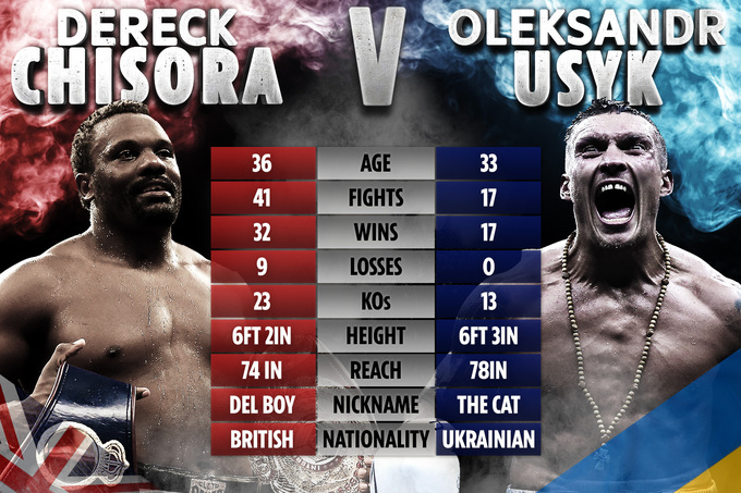 В главном бою вечера в супертяжелом весе сойдутся экс-чемпион мира в крузервейте Александр Усик (17–0, 13 КО) и британский ветеран Дерек Чисора (32–9, 23 КО).