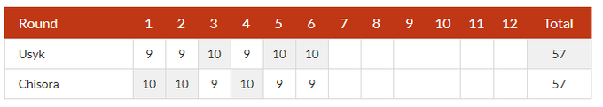 01:33. Вердикт BoxingScene – пока ничья! 57–57 после 6 раундов.