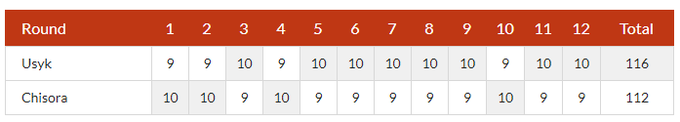 01:58. ОФИЦИАЛЬНО! Усик побеждает Чисору по очкам: 117–112, 115–113, 115–113!!!