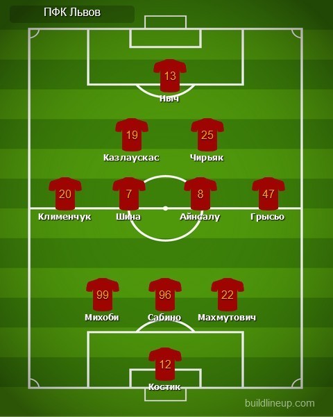 «Львов»: Орест Костик, Энес Махмутович, Михоби Маруан, Максим Грысьо (Юрий Кравчук, 79), Егор Клименчук, Сабино, Шина, Айнсалу (Владимир Якимец, 70), Фране Чирьяк (Эрнест Антви, 69), Тракай Казлаускас (Игорь Кошман, 91), Назарий Ныч