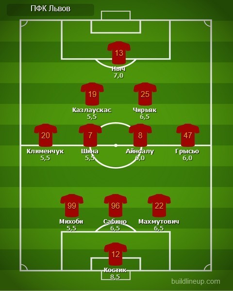 Замены «Львова»: Эрнест Антви - 5,5; Владимир Якимец - 5,5; Юрий Кравчук - б/о; Игорь Кошман - б/о.