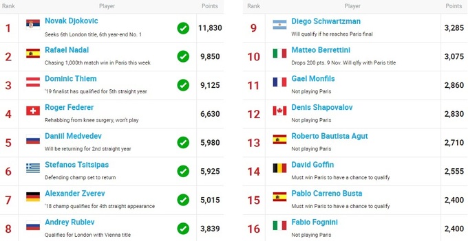 По результатам Чемпионской гонки стал известен еще один участник Итогового турнира в Лондоне. Им стал все тот же Рублев. Еще одно место остается вакантным.