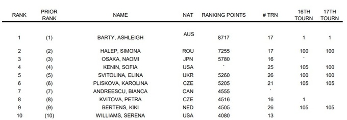 Элина Свитолина и Даяна Ястремская сохранили свои позиции. У остальных представительниц нашей страны изменения если и есть, то незначительные.