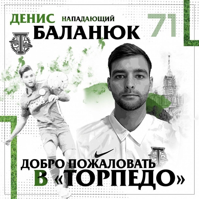 Официальный сайт российского клуба «Торпедо» Москва объявил о подписании украинского форварда Дениса Баланюка.