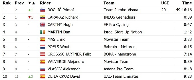Вуэльта. Роглич выиграл разделку и вернул себе лидерство