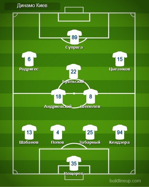 «Динамо»: Руслан Нещерет, Денис Попов, Илья Забарный, Томаш Кендзёра, Артём Шабанов, Александр Андриевский, Владимир Шепелев, Виктор Цыганков, Виталий Буяльский (Богдан Леднев, 86), Жерсон Родригеш (Карлос Де Пена, 71), Владислав Супряга (Беньямин Вербич, 71)
