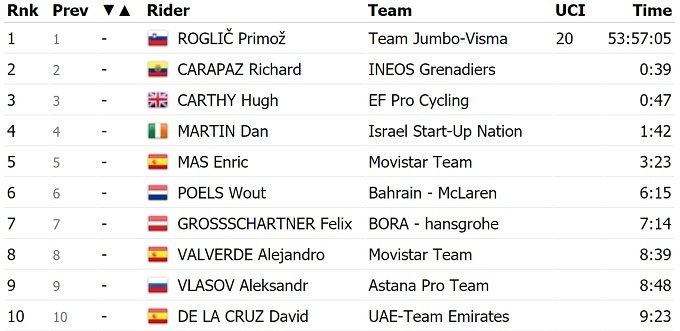 Лидером общего зачета остался победитель вчерашнего этапа Примож Роглич.