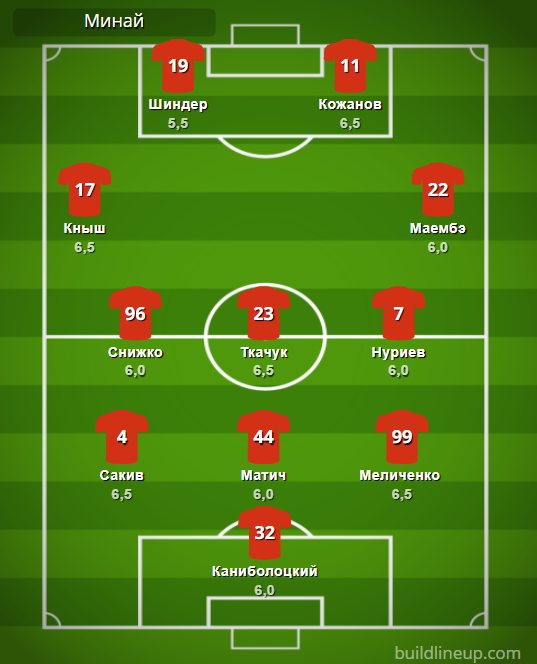 «Минай»: Каниболоцкий – Сакив, Матич, Меличенко – Кныш, Снижко (Ахмедзаде, 85), Ткачук (Малепе, 86), Нуриев, Маембэ – Шиндер (Хахлев, 73), Кожанов (Пиняшко, 61).